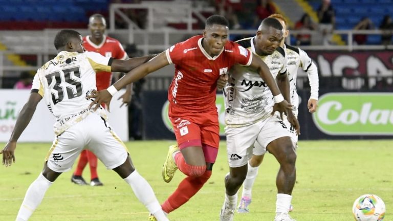 Los ‘Diablos Rojos’ volvieron a tocar la puerta contraria al 28 con un centro de Ómar Bertel y un remate de cabeza de Jan Lucumí, pero la esférica se fue por el vertical derecho de Ortega.