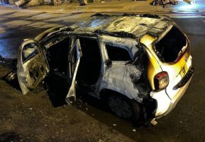 Los cuatro pasajeros del vehículo tuvieron que salir luego de que les lanzaron la bomba molotov.