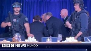 Los videos muestran que se oyen fuertes estruendos y, acto seguido, varios miembros del Servicio Secreto escoltan al presidente fuera del recinto gritando: «¡Agáchense, agáchense!».