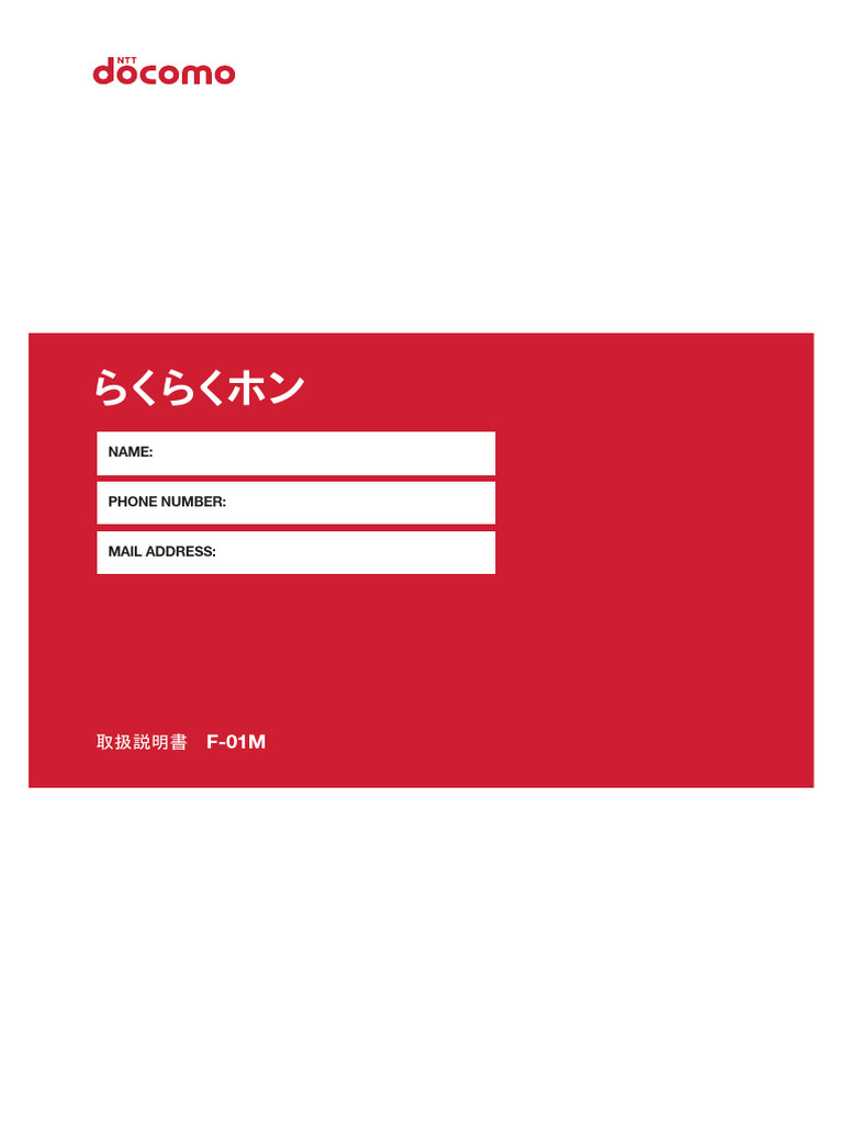 - スマートフォン・携帯電話 > 携帯電話本体 > docomoらくらくホンF-01M 本体・充電器・説明書 docomoらくらくホンF-01M 本体・充電器・説明書 F-01M J Syousai | PDF