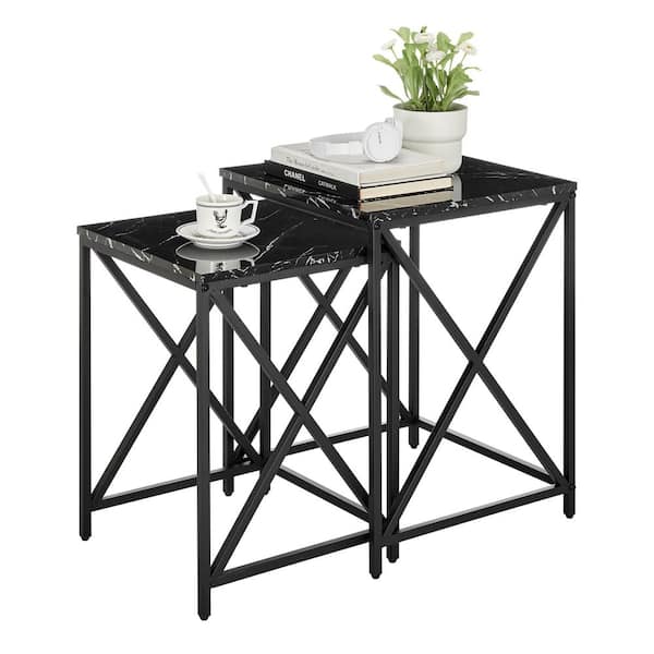 BRIESTA black marble & YONAGI FSセット DANYA B Modern Square Marble Finish Veneer Top Black Metal Frame
