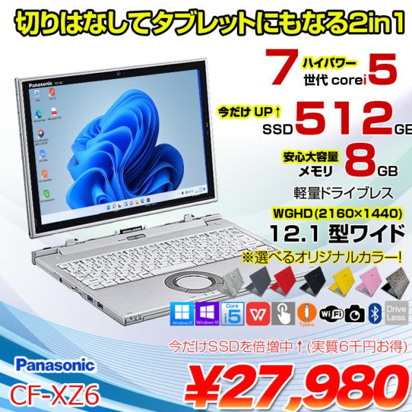 - ノートPC > Windowsノート本体 > 最安Panasonic レッツノートXZ6 2in1 i5 8G SSD256G 中古パソコン】Panasonic CF-XZ6 中古 レッツノート Office Win11 2in1