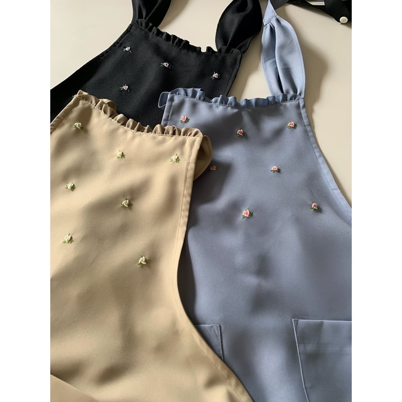 | メーカー | エプロン ショート エメラルドピンクバラ柄 ブルーグレー水玉/ターコイズフリル エプロン |