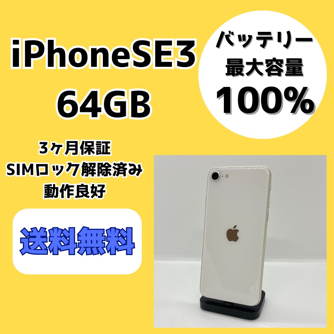 2023年12月購入 バッテリー容量100% iPhone SE 3 64GB バッテリー最大容量100%】iPhone SE3 64GB スターライト バッテリー100