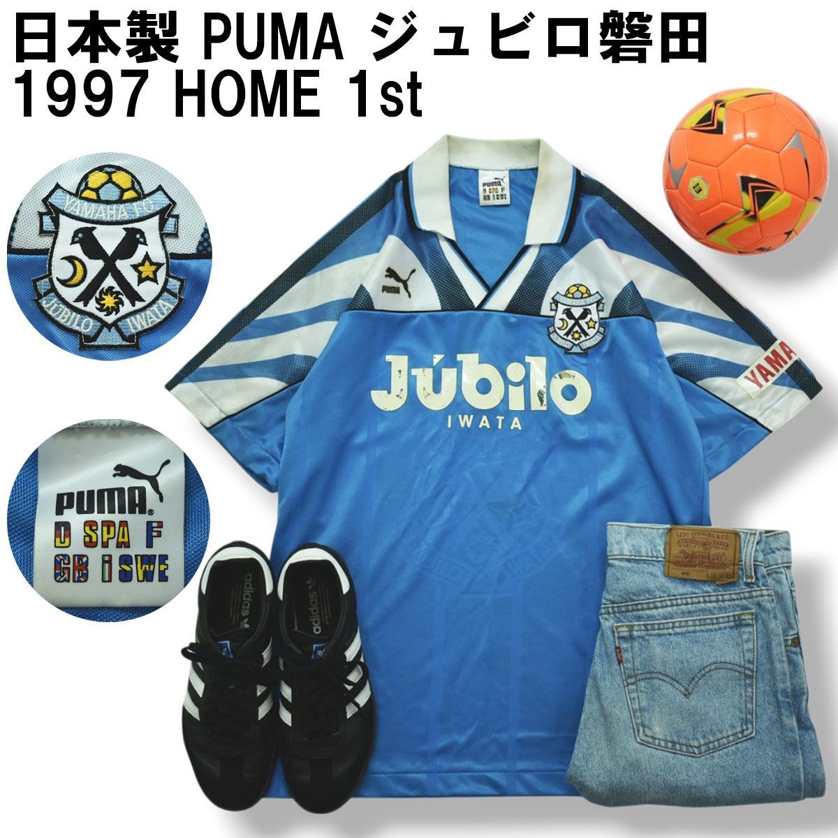 90s JUBILO ジュビロ磐田 プーマ ユニフォーム ゲームシャツ 白 L 希少】 日本製 プーマ PUMA ジュビロ磐田 1997 HOME 1st S/S
