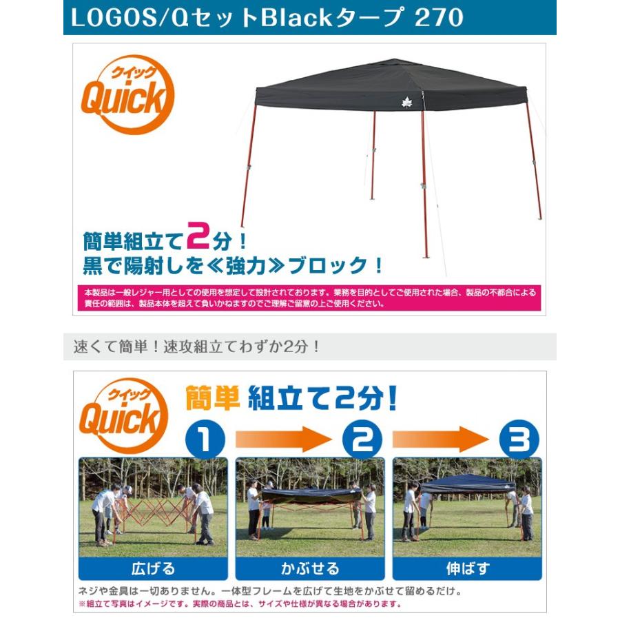 - アウトドア > テント・タープ > ロゴスQセットブラックタープ270セット71661013&716620 LOGOS(ロゴス) LOGOS Qセット Blackタープ270 ワンタッチタープ